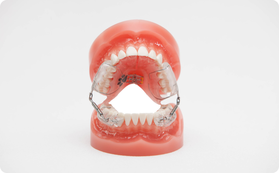 Cet appareil agit sur la croissance des mâchoires afin de favoriser un meilleur équilibre facial et une occlusion plus fonctionnelle.
