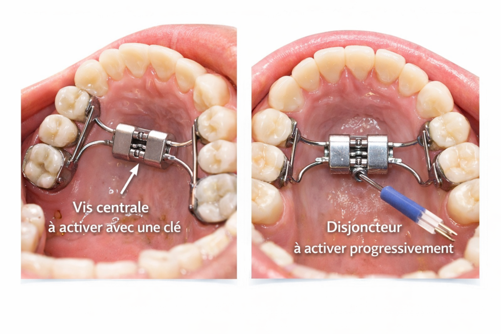 Le disjoncteur corrige la largeur de la mâchoire. D’autres appareils peuvent être nécessaires ensuite pour aligner les dents.